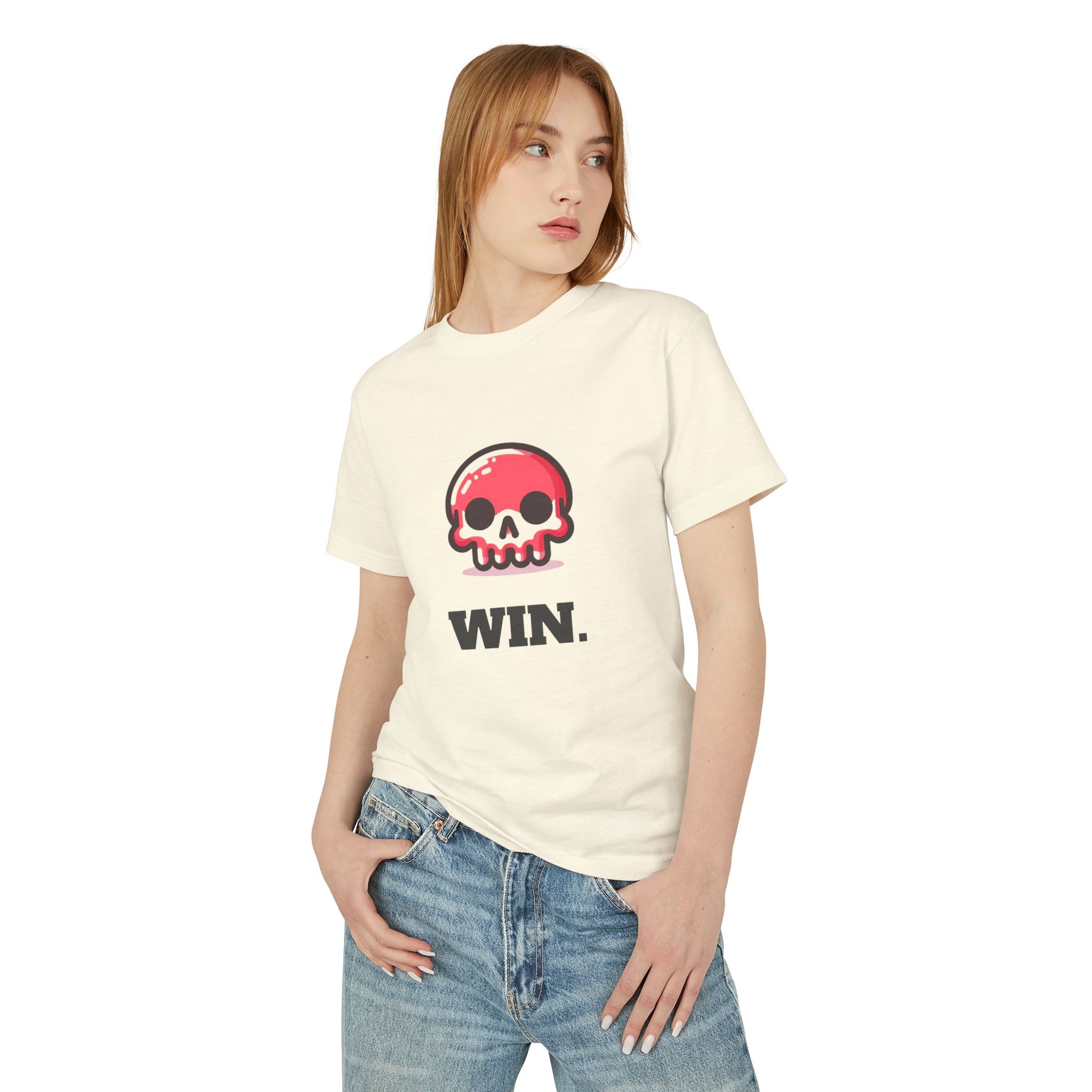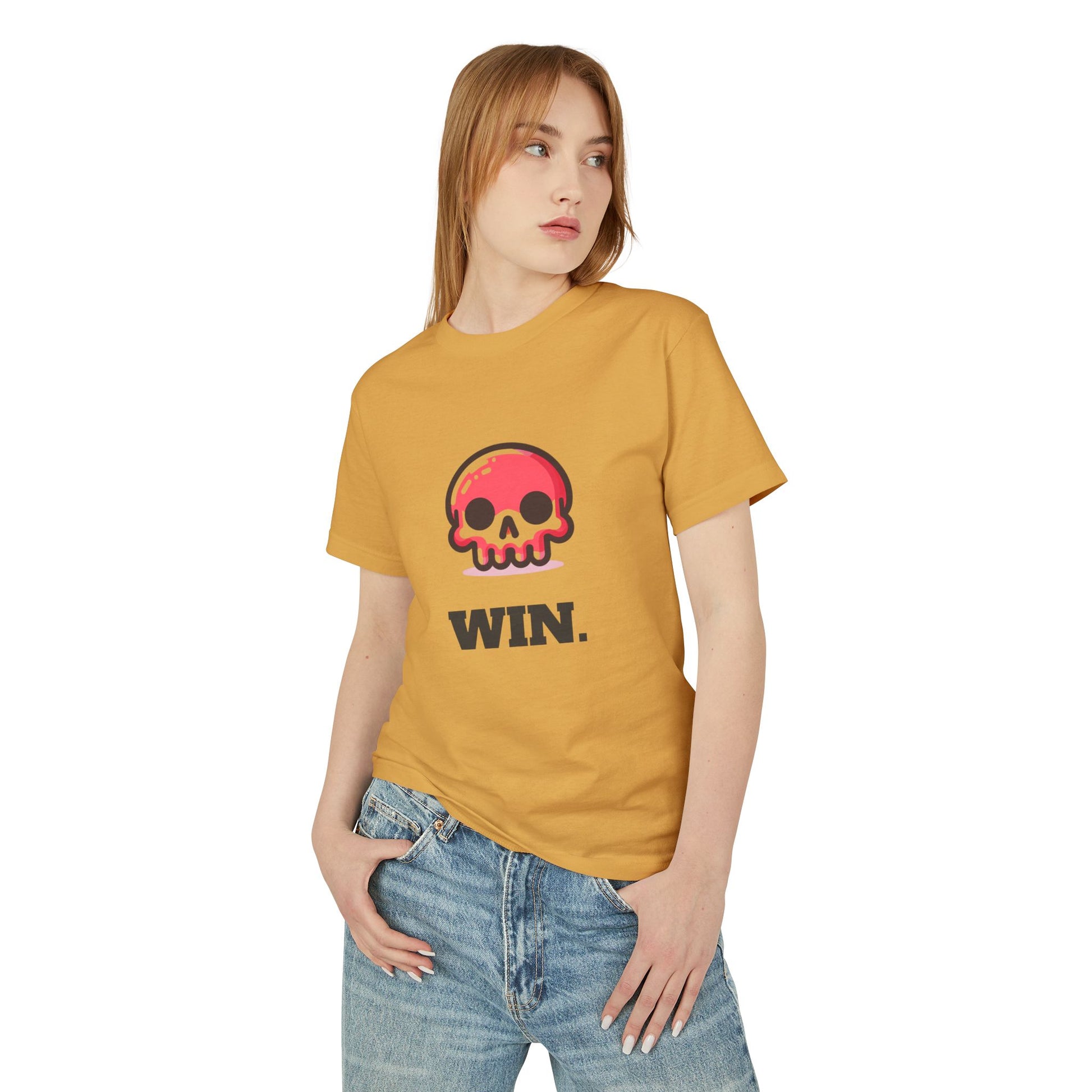 A unisex garment-dyed heavyweight cotton tee featuring a cartoon skull from our retired Halloween Collection. This tee offers a relaxed fit with a wide rib collar and shoulder and neck taped seams for stability and comfort. Made with 100% cotton and certified by OEKO-TEX Standard 100 and FLA and WRAP for sustainable and socially conscious manufacturing practices. Perfect for those looking for a unique and edgy graphic tee.